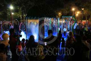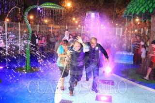 CIUDAD DE MÉXICO, 29NOVIEMBRE2016.-Israel Moreno delegado en Venustiano Carranza acompañado de el ex delegado y asambleísta constituyente Julio César Moreno, inauguraron el parque acuático Chiapas ubicado sobre la avenida Fray Servando. Al término de la inauguración el jefe delegacional se introdujo con los niños en las fuentes brotantes del parque acuático. FOTO: SAÚL LÓPEZ /CUARTOSCURO.COM