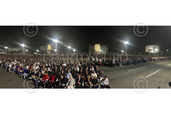 LA HABANA, CUBA, 29NOVIEMBRE2016.- Miles de personas y presidentes de países amigos de la isla se congregaron en la Plaza de la Revolución, para homenajear a Fidel Castro, líder de la Revolución cubana fallecido el pasado 25 de noviembre. En la imagen, Raúl Castro, presidente de Cuba y Enrique Peña Nieto, presidente de México