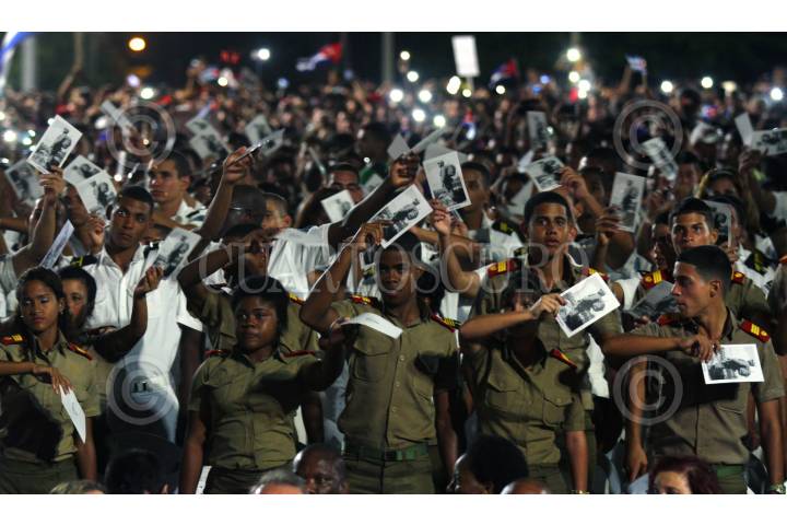 LA HABANA, CUBA, 29NOVIEMBRE2016.- Miles de personas y presidentes de países amigos de la isla se congregaron en la Plaza de la Revolución, para homenajear a Fidel Castro, líder de la Revolución cubana fallecido el pasado 25 de noviembre. En la imagen, Raúl Castro, presidente de Cuba y Enrique Peña Nieto, presidente de México