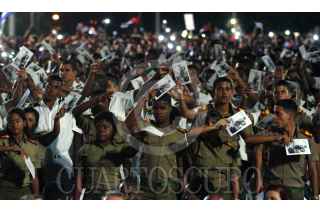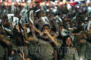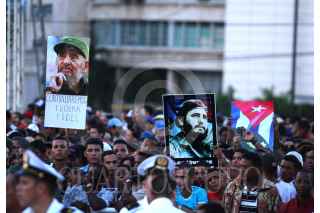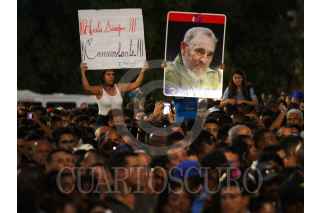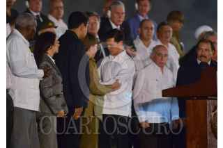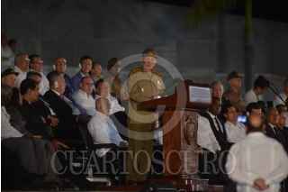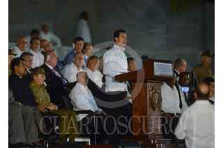 LA HABANA, CUBA, 29NOVIEMBRE2016.- Miles de personas y presidentes de países amigos de la isla se congregaron en la Plaza de la Revolución, para homenajear a Fidel Castro, líder de la Revolución cubana fallecido el pasado 25 de noviembre. En la imagen, Raúl Castro, presidente de Cuba y Enrique Peña Nieto, presidente de México