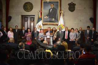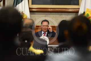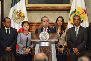 XALAPA, VERACRUZ, 30NOVIEMBRE2016.- Emite Flavino Ríos Alvarado, gobernador interino de Veracruz, ofreció su último mensaje de gobierno en la sala de banderas del Palacio de Gobierno. FOTO: ALBERTO ROA /CUARTOSCURO.COM