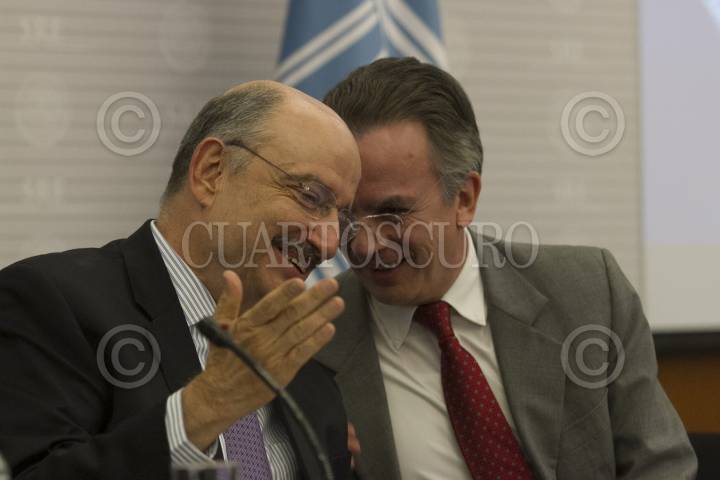 CIUDAD DE MÉXICO, 30NOVIEMBRE2016.- Carlos A. de Icaza, subsecretario de Relaciones Exteriores, y Miguel Ruiz Cabañas, subsecretario para Asuntos Multilaterales y derechos Hermanos de la SRE, durante la presentación del libro "México y la Unesco. La Unesco y México. Historia de una Relación". FOTO: MOISÉS PABLO /CUARTOSCURO.COM