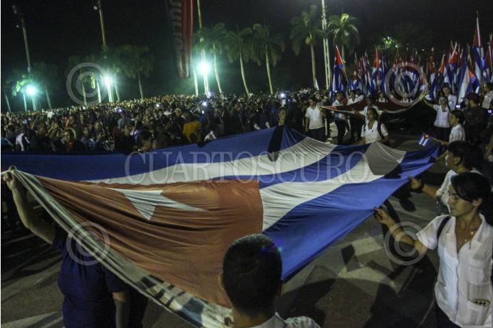 SANTA CLARA, CUBA, 01DICIEMBRE2016.- Miles de personas se apostaron a las orillas de la calle principal de la mítica provincia del valle de Villa Clara, para despedir los restos de Fidel Castro Ruz, líder de la revolución cubana. "La caravana por la libertad", inició su segundo día de recorrido por la ciudad en donde Ernesto "el Che" Guevara, derrotó al ejército de Batista y decidiría el triunfo del Movimiento 26 de julio. FOTO: ADOLFO VLADIMIR /CUARTOSCURO.COM