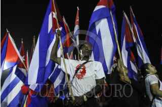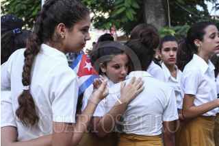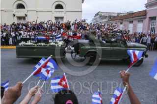 SANTA CLARA, CUBA, 01DICIEMBRE2016.- Miles de personas se apostaron a las orillas de la calle principal de la mítica provincia del valle de Villa Clara, para despedir los restos de Fidel Castro Ruz, líder de la revolución cubana. "La caravana por la libertad", inició su segundo día de recorrido por la ciudad en donde Ernesto "el Che" Guevara, derrotó al ejército de Batista y decidiría el triunfo del Movimiento 26 de julio. FOTO: ADOLFO VLADIMIR /CUARTOSCURO.COM