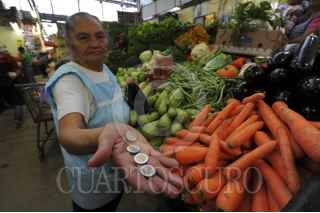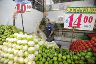 CIUDAD DE MÉXICO, 01DICIEMBRE2016.- La Comisión Nacional de Salarios Mínimos acordo un aumento de 7 pesos al salario mínimo para el 1 de enero del 2017, por lo qu este será de 80.04 peso diarios. La imagen en un mercado en donde tan solo un kilo de jitomate cuesta $18 pesos, mientras que el limón esta en $14 y la cebolla $10 pesos. FOTO: ARMANDO MONROY /CUARTOSCURO.COM
