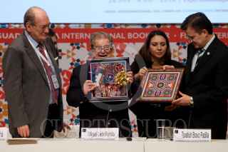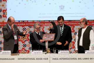 GUADALAJARA, JALISCO. 01DICIEMBRE2016.- Miguel León –Portilla, fue homenajeado en el Encuentro de Literaturas en Lenguas Originarias de América, esto en el marco de la edición 30 de la Feria Internacional del Libro de Guadalajara FIL, que se lleva a cabo en la Expo del 26 de noviembre al 04 de diciembre. FOTO : FERNANDO CARRANZA GARCIA / CUARTOSCURO.COM