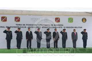 APODACA, NUEVO LEÓN, 02DICIEMBRE2016.- Se llevó a cabo la ceremonia de la toma de protesta del nuevo Comandante de la Cuarta Región Militar, Javier Cruz Rivas, quien cuenta con más de 46 años de servicio y se desempeñó como Comandante del Centro Nacional de Adiestramiento en Chihuahua, Comandante de la 18 Zona Militar en Pachuca, Hidalgo y Comandante de la 15 Zona Militar en Jalisco, entre otros nombramientos. FOTO: PRENSA GOBIERNO NL /CUARTOSCURO.COM