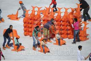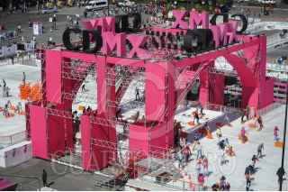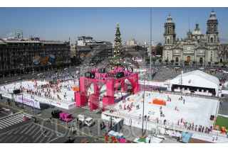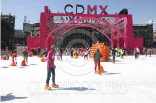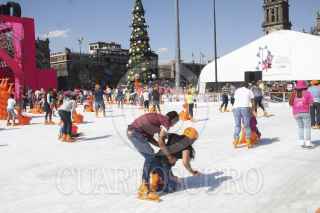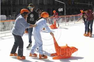 CIUDAD DE MÉXICO, 03DICIEMBRE2016.- El día de hoy la pista de hielo fue habilitada para todos los capitalinos y turistas que visitan el zócalo capitalino. La pista estará en funcionamiento hasta el 8 de enero de 2017 y tendrá un horario de nueve de la mañana a nueve de la noche. FOTO: ANTONIO CRUZ /CUARTOSCURO.COM