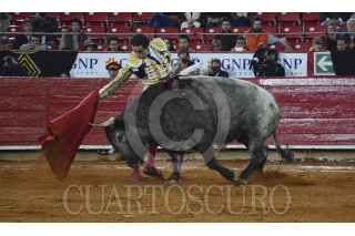 CIUDAD DE MÉXICO, 04DICIEMBRE2016.- Juan Pablo Sánchez ejecuta con la muleta durante la corrida en la Plaza de Toros. FOTO: GABINO ACEVEDO /CUARTOSCURO.COM