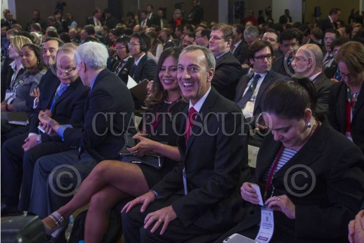 CIUDAD DE MÉXICO, 05DICIEMBRE2016.- Timothy Joseph Callahan, representante de la empresa BHP Billition Petróleo Operaciones de México, presentó la oferta ganadora de la licitación Trion de Pemex, la cual se realizó esta mañana en el Centro Banamex. La empresa australiana se convirtió en la primera socia formal de Petróleos Mexicanos. En la imagen loa compañan Pedro Joaquín Coldwell, secretario de Energía, el titular de la paraestatal José Antonio González Anaya, y Juan Carlos Zepeda, presidente de la Comisión Nacional de Hidrocarburos. FOTO: ISAAC ESQUIVEL /CUARTOSCURO.COM