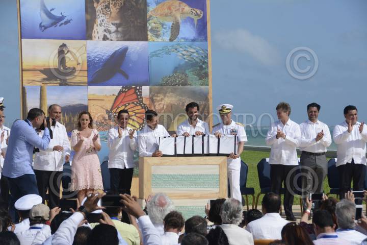 CANCÚN, QUINTANA ROO, 05DICIEMBRE2016.- Enrique Peña Nieto, presiente de México, acompañado del gobernador del estado Carlos Joaquín González, durante la Presentación del decreto de reserva de la biosfera del Caribe mexicano. FOTO: ELIZABETH RUIZ /CUARTOSCURO.COM