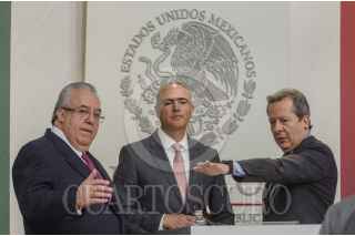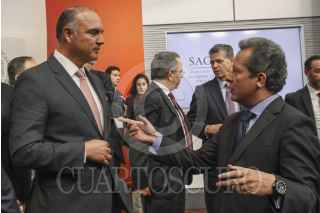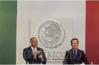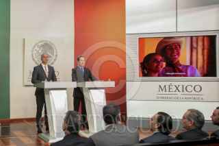 CIUDAD DE MÉXICO, 06DICIEMBRE2016.- José Eduardo Calzada Rovirosa, titular de SAGARPA, acompañado de Eduardo Sánchez, vocero de la Presidencia, anunciaron la México Alimentaria Food Show 2016. Que se llevará a cabo del 8 al 10 de diciembre en el Centro Banamex. Se espera asistan compradores de más de 130 países, entre los que destacan; Estados Unidos, Canadá, China, Japón, de la Unión Europea y la Península Arabiga, entre otros. El secretario Calzada estimó ventas de más de mil millones de dólares. FOTO: ANDRÉS YAÑEZ /CUARTOSCURO.COM