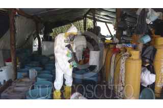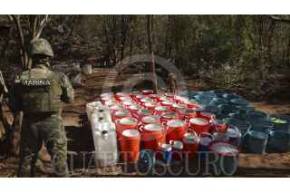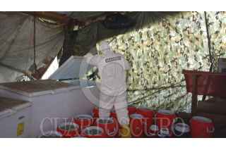 ALGODONES, SINALOA, 06DICIEMBRE2016.- La Secretaría de Marina-Armada de México informa que en el marco de las operaciones que realiza el personal naval, el día de hoy se logró el aseguramiento de más de una tonelada de producto terminado (metanfetaminas), así como material y equipo para su elaboración. Este aseguramiento se realizó a cabo durante un recorrido de vigilancia terrestre y apoyo a la seguridad pública cuando personal de Infantería de Marina localizó y desmanteló un laboratorio clandestino cubierto de la vista aérea, con material y precursores químicos para la fabricación de drogas sintéticas. FOTO: SEMAR /CUARTOSCURO.COM