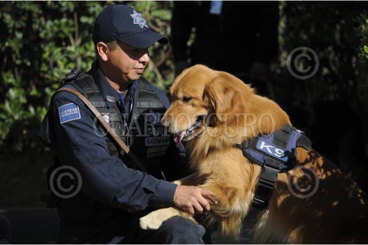 CIUDAD DE MÉXICO, 07DICIEMBRE2016.- Renato Sales Heredia, comisionado Nacional de Seguridad (CNS); Manelich Castilla Craviotto, comisionado General de la Policía Federal, y José Luis Payró Dueñas, presidente de la Federación Canófila Mexicana (FCM), encabezaron la ceremonia de jubilación de nueve integrantes caninos de la Policía Federal que han dado servicio por más de 10 años. El comisionado Nacional anunció que Estados Unidos donó 30 perros a la corporación policiaca, como parte de la Iniciativa Mérida, con el objetivo de combatir al narcotráfico y crimen organizado. FOTO: DIEGO SIMÓN SÁNCHEZ /CUARTOSCURO.COM