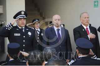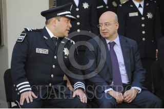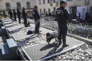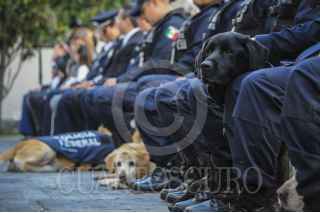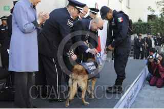 CIUDAD DE MÉXICO, 07DICIEMBRE2016.- Renato Sales Heredia, comisionado Nacional de Seguridad (CNS); Manelich Castilla Craviotto, comisionado General de la Policía Federal, y José Luis Payró Dueñas, presidente de la Federación Canófila Mexicana (FCM), encabezaron la ceremonia de jubilación de nueve integrantes caninos de la Policía Federal que han dado servicio por más de 10 años. El comisionado Nacional anunció que Estados Unidos donó 30 perros a la corporación policiaca, como parte de la Iniciativa Mérida, con el objetivo de combatir al narcotráfico y crimen organizado. FOTO: DIEGO SIMÓN SÁNCHEZ /CUARTOSCURO.COM