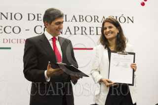 CIUDAD DE MÉXICO, 07DICIEMBRE2016.- Alexandra Haas Paciuc, Consejo Nacional para Prevenir la Discriminación (Conapred), firmó junto el titular de la Profeco un convenio para crear un manual de derechos de las personas que tienen una discapacidad al momento de solicitar un servicio, el encuentro fue en la sede de la procuraduría. FOTO: MOISÉS PABLO /CUARTOSCURO.COM