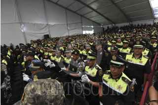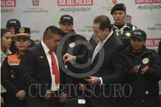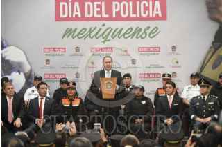 TOLUCA, ESTADO DE MEXICO, 07DICIEMBRE2016.- Eruviel Ávila Villegas, gobernador del Estado de México, durante la ceremonia del Día del Policía Mexiquense en donde se realizo la entrega de reconocimientos a elementos de la PGJEM y la CESC, estuvo acompañado por Isabel Miranda de Wallace, presidenta de la Asociación Civil Alto al Secuestro, Maria Elena Morera Mitre, presidenta de la Asociación Causa en Común, Alejandro Gómez Sánchez, titular de la PGJEM, Eduardo Valiente, Comisionado estatal de Seguridad Ciudadana, Jorge Olvera García, rector de la UAEM. FOTO: PILAR AGUILAR / CUARTOSCURO.COM