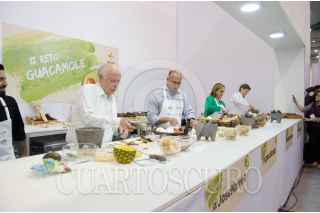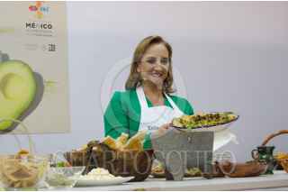 CIUDAD DE MEXICO, 08NOVIEMBRE2016.- Los secretarios José Narro Robles, Salud, José Calzada Rovirosa, Sagarpa, Claudia Ruiz Massieu, Relaciones Exterioresy Enrique de la Madrid, Turismo, prepararon su versión de un guacamole en la Food Alimentaria 2016. La canciller gano el primer lugar. FOTO: ANDRES YAÑEZ /CUARTOSCURO.COM