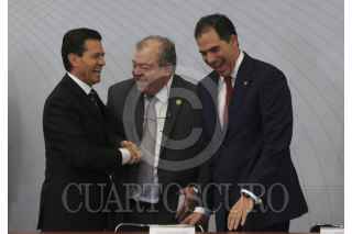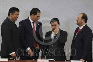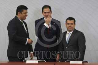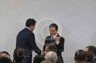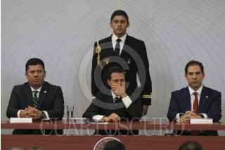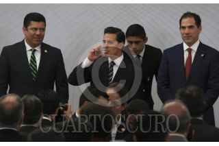 CIUDAD DE MÉXICO, 09DICIEMBRE2016.- Javier Bolaños, presidente de la mesa directiva de la Cámara de Diputados, Enrique Peña Nieto, presidente de la república y Pablo Escudero, presidente de la mesa directiva del Senado de la República, durante la clausura del Encuentro Nacional de Procuración e Impartición de Justicia realizado en Ciudad Judicial. FOTO: SAÚL LÓPEZ /CUARTOSCURO.COM