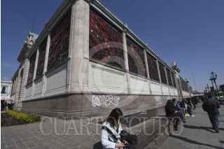 TOLUCA, ESTADO DE MÉXICO, 09DICIEMBRE2016.- Una de las paredes del Jardín Botánico Cosmovitral en la ciudad de Toluca, fue vandalizado con cuatro pintas en la fachada del lado de la avenida Lerdo. FOTO: PILAR AGUILAR /CUARTOSCURO.COM