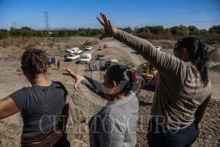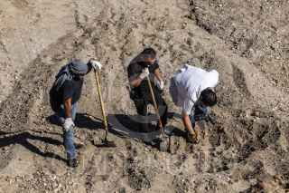 CULIACÁN, SINALOA, 09DICIEMBRE2016.- En las inmediaciones de la criba, La Mosa en la sindicatura de Culiacancito, autoridades de la Procuraduría General de Justicia del Estado en compañía con un grupo de mujeres de Voces Unidas dieron seguimiento a los trabajos iniciados ayer por la tarde donde se ubicaron cuatro osamentas enterradas. FOTO: RASHIDE FRIAS /CUARTOSCURO.COM