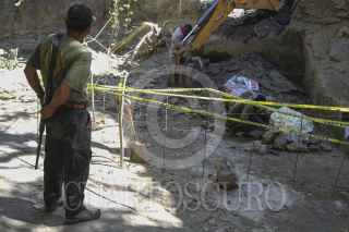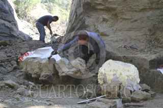 CUAJINICUILAPA, GUERRERO, 09DICIEMBRE2016.- Gran expectación entre la población de la región de Costa Chica ha provocado el hallazgo de los restos de una ballena, con una antigüedad aproximada de 2 mil millones de años. Los restos, utilizados como un lugar para sentarse entre personas que caminaban por la zona, están siendo analizados para determinar su antigüedad exacta. El arqueólogo Antonio Hermosillo explicó que “la sección expuesta es solo una parte pues la mitad estaba erosionada por el agua, ya que en el sitio atraviesa un arroyo. Subrayó que “estamos una etapa de rescate para tener datos más precisos”. El arqueólogo expresó que “es un hallazgo importante, primer espécimen marino que se encuentra en el estado de Guerrero y puede ser que en México”. En cuanto a los trabajos que se hacen en el área, detalló que “se tomó la resolución para quitar con máquina parte del arroyo, y llegar hasta los vestigios, anatómicamente están ordenados, pensamos que no está sellada, las costillas indican la dirección, así como su columna, se descubrieron como cinco metros de columna, faltan como cinco metros más el cráneo que es muy importante pues ayudará a determinar la especie”. FOTO: BERNANDINO HERNÁNDEZ /CUARTOSCURO.COM