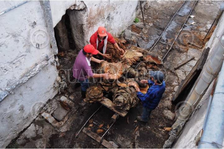 CHARCAS, SAN LUIS POTOSÍ, 10DICIEMBRE2016.- La fábrica de mezcal Laguna Seca es de los pocos lugares en el país donde hacen mezcal de forma artesanal para exportación. La preparación de la bebida comienza cuando las piñas del agave son cocidas en hornos que funcionan a partir de otras piñas secas como combustible. Posteriormente, en el área de molienda, se usa una tahona (piedra redonda de más de dos toneladas) para macerar las piñas salidas del horno y así sacar el jugo de la planta; el cual, a través de la gravedad y un sistema de tuberías, llega a unas piletas donde se fermenta. El siguiente paso es la destilación, proceso donde se gradúa el nivel de alcohol; después, se pasa el mezcal a las barricas para su reposo o añejamiento. Finalmente, la bebida se embotella. La fábrica ha ganado diversos premios por generar un mínimo de contaminación y utilizar los deshechos como abono. FOTO: DIEGO SIMÓN SÁNCHEZ /CUARTOSCURO.COM