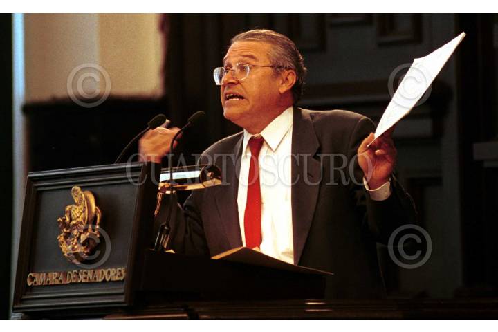 Adolfo Aguilar Zinser senador independiente y asesor en materia internacional de Fox conversa con el legislador del PRD Higinio Martinez, durante la sesion de la comision permanente. FOTO: Germán Romero/CUARTOSCURO.COM