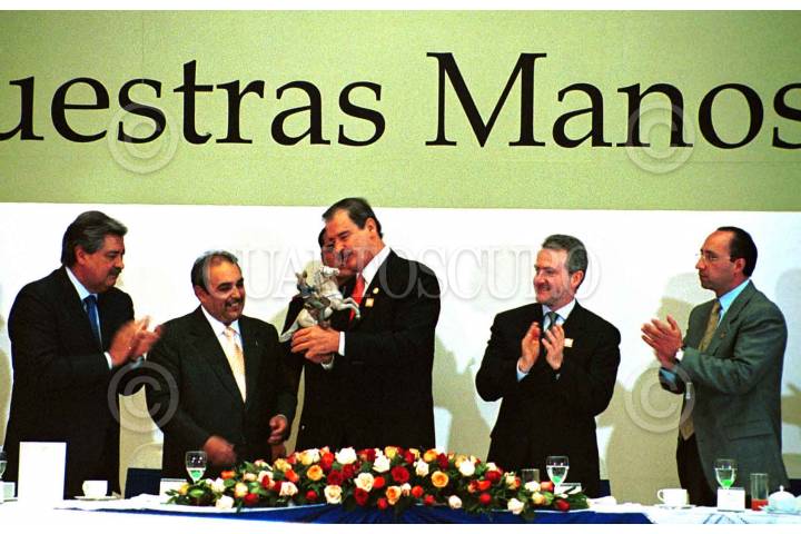 Vicente Fox, durante su discurso, dentro de la firma del convenio de Desarrollo de Autopistas de Cuota para la Modernización de Corredores en el 2003, mencionó que habra presupuesto para realizar grandes obras dentro del país. FOTO: Eunice Adorno/CUARTOSCURO.COM