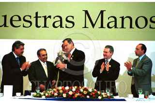 Vicente Fox, durante su discurso, dentro de la firma del convenio de Desarrollo de Autopistas de Cuota para la Modernización de Corredores en el 2003, mencionó que habra presupuesto para realizar grandes obras dentro del país. FOTO: Eunice Adorno/CUARTOSCURO.COM