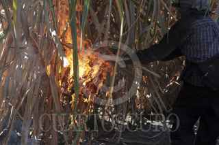 AYALA, MORELOS, 11DICIEMBRE2016.- Inició del corte de caña en el paraje “Los Cuatro”. Los trabajadores limpian la vara dulce para alistarla y llevarla a los ingenios, en donde se molerá para exprimirle la sacarosa, que derivará en azúcar más tarde. Aunque autoridades habían señalado que este año no se quemaría la vara y así evitar contaminación al medio ambiente, sin embargo, aún se observa esta práctica entre los jornaleros. Gran parte de la caña levanta va a parar al ingenio de Casasano, el cual espera una molienda total de por los menos 632 mil toneladas. FOTO: MARGARITO PÉREZ RETANA /CUARTOSCURO.COM