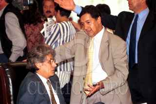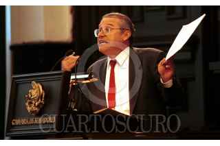 Adolfo Aguilar Zinser senador independiente y asesor en materia internacional de Fox conversa con el legislador del PRD Higinio Martinez, durante la sesion de la comision permanente. FOTO: Germán Romero/CUARTOSCURO.COM