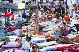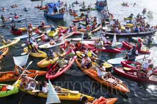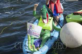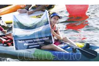 CANCÚN, QUINTANA ROO, 11DICIEMBRE2016.- Representantes de diversos pueblos indígenas de México, América Latina y ciudadanos, navegaron sobre la laguna Nichupte, para pedir por la conservación de la selva amazónica, el Malecón Tajamar, y la isla de Holbox, en el marco de la acción “Global Canoe”. En este contexto se le envió un mensaje a los ministros reunidos en el COP13, cumbre mundial de biodiversidad, para que se escuche la opinión de los pueblos originarios de la zonas que se encuentran amenazadas por proyectos turísticos, comerciales y/o industriales. Las pequeñas embarcaciones partieron del Puente de Calinda al Malecón de Tajamar. FOTO: ELIZABETH RUIZ /CUARTOSCURO.COM