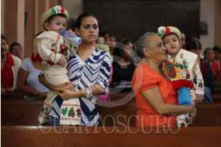 VERACRUZ, VER., 12DICIEMBRE16.- La mañana de este lunes, familias veracruzanas asistieron a la Catedral con sus hijos vestidos de inditos como parte de las celebraciones del 485 aniversario de la aparición de la Virgen de Guadalupe en el cerro del Tepeyac. FOTO: ILSE HUESCA /CUARTOSCURO.COM