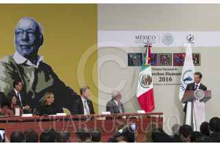 CIUDAD DE MÉXICO, 12DICIEMBRE2016.- Enrique Peña Nieto, Presidente de México, entregó el Premio Nacional de Derechos Humanos 2016 post mortem a Rodolfo Stavenhagen, en la residencia oficial de Los Pinos. FOTO: MOISÉS PABLO /CUARTOSCURO.COM