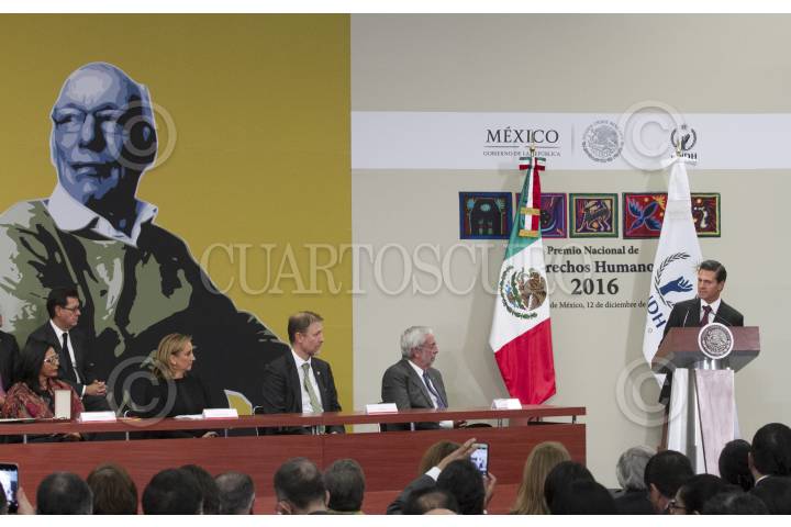 CIUDAD DE MÉXICO, 12DICIEMBRE2016.- Enrique Peña Nieto, Presidente de México, entregó el Premio Nacional de Derechos Humanos 2016 post mortem a Rodolfo Stavenhagen, en la residencia oficial de Los Pinos. FOTO: MOISÉS PABLO /CUARTOSCURO.COM