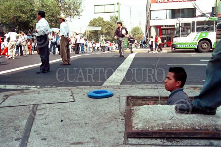 José Medél, líder sindical de los Trabajadores del Gobierno capitalino, se acercó a las oficinas del GDF este mediodía durante la manifestación en el zócalo. FOTO: Nelly Salas/CUARTOSCURO.COM