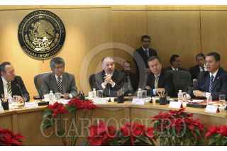 CIUDAD DE MÉXICO, 12DICIEMBRE2016.- El Procurador General de la República, Raúl Cervantes Andrade, se reunió con la Junta de Coordinación Política de la Cámara de Diputados. En la imagen lo acompaña el coordinador priista César Camacho Quiroz. FOTO: CUARTOSCURO.COM