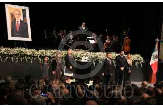 CIUDAD DE MÉXICO, 12DICIEMBRE2016.- Enrique Peña Nieto, presidente de México, acompañado de integrantes del gabinete Federal encabezaron el homenaje luctuoso que se le realizó al Secretario de Cultura Rafael Tovar y de Teresa en el Centro Nacional de las Artes. FOTO: SAÚL LÓPEZ /CUARTOSCURO.COM