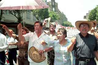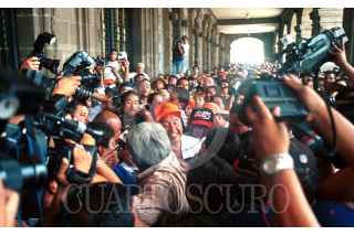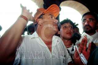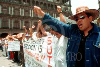 José Medél, líder sindical de los Trabajadores del Gobierno capitalino, se acercó a las oficinas del GDF este mediodía durante la manifestación en el zócalo. FOTO: Nelly Salas/CUARTOSCURO.COM