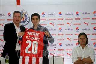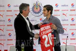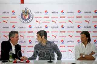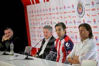 ZAPOPAN, JALISCO. 13DICIEMBRE2016.- Jorge Vergara, dueño del Club Guadalajara; Matías Almeida, Director Técnico; José Luis Higuera, CEO del Grupo Omnilife, encabezaron la presentación del nuevo refuerzo de Chivas, Rodolfo Pizarro, jugador proveniente del Club Pachuca. El evento se llevó a cabo en las instalaciones del estadio Chivas. FOTO: FERNANDO CARRANZA GARCIA /CUARTOSCURO.COM