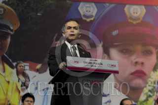 CIUDAD DE MÉXICO, 13DICIEMBRE2016.- Miguel Ángel Mancera, jefe de gobierno de la Ciudad de México, encabezó el evento con motivo del Día del Policía, declarado el 2 de julio de 2011 para reconocer y entregar estímulos a los cuerpos policíacos por su labor. Mancera declaró estar orgulloso de los elementos de la ciudad, a quienes les otorgaron reconocimientos y premios. FOTO: GALO CAÑAS /CUARTOSCURO.COM