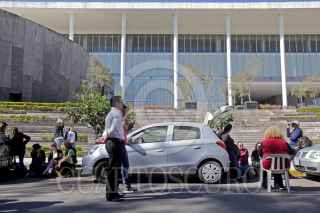 ZAPOPAN, JALISCO. 13DICIEMBRE2016.- Por el retraso del pago que corresponde a la quincena, prima vacacional y aguinaldo, trabajadores del Poder Judicial realizan un paro de labores a las afueras de las instalaciones de Ciudad Judicial y son alrededor de 70 millones de pesos, el recurso que hace falta al Consejo de la Judicatura para solventar a su personal este fin de año. FOTO : FERNANDO CARRANZA GARCIA / CUARTOSCURO.COM.