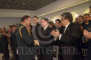 CIUDAD DE MÉXICO, 13DICIEMBRE2016.- El General Roberto Miranda Moreno, Jefe del Estado Mayor Presidencial, presentó su Cuarto Informe de Actividades 2015-2016, en un acto en el que afirmó que “nuestro incentivo es cuidar a México, mediante la estabilidad que genera la seguridad del Presidente de la República”. En la imagen Miranda Moreno saluda a Francisco Guzmán Ortiz, Jefe de la Oficina de la Presidencia. FOTO: PRESIDENCIA /CUARTOSCURO.COM