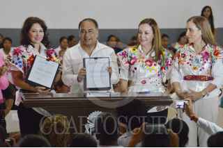 CHILPANCINGO, GUERRERO, 13DICIEMBRE2016.- Laura Vargas Carrillo, directora general del DIF nacional; Paula Hernández Olmos, coordinadora general del programa Prospera, Mercedes Calvo de Astudillo y el gobernador Héctor Astudillo, encabezaron la entrega de de Mi Cuna Prospera y la firma del convenio DIF –Prospera, que se llevó a cabo en la Casa Guerrero. FOTO: JOSÉ I.HERNÁNDEZ / CUARTOSCURO.COM
