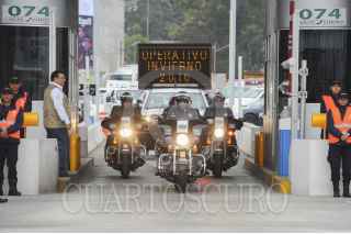 CIUDAD DE MÉXICO, 15DICIEMBRE2016.- Elementos de la Marina, Policia Federal y de Caminos y Puentes Federales de Ingresos y Servicios Conexos (CAPUFE) particparon en la puesta en marcha del operativo vacacional 2016 en la caseta de la autopista México-Cuernavaca. FOTO: ARMANDO MONROY /CUARTOSCURO.COM