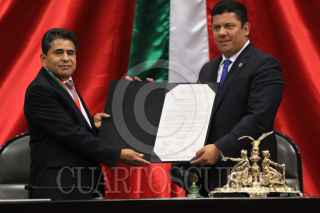 CIUDAD DE MÉXICO, 15DICIEMBRE2016.- Javier Bolaños, presidente de la mesa directiva dea Cámara de Diputados, entregó en sesión solemne la medalla al Mérito Cívico, Eduardo Neri al empresario José Luis Zavala. FOTO: SAÚL LÓPEZ /CUARTOSCURO.COM
