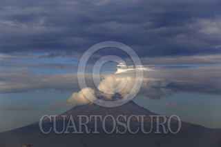 PUEBLA, PUEBLA, 16DICIEMBRE2016.- El volcán Popocatépetl amaneció con una fumarola de ceniza y vapor de agua que alcanzó varios kilómetros de dstancia. FOTO: HILDA RÍOS /CUARTOSCURO.COM