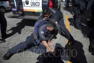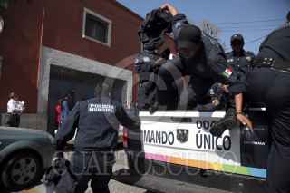 CUERNAVACA, MORELOS, 13DICIEMBRE2016.- Elementos del Mando Único policial de Morelos resguardaron el edificio del Ayuntamiento de Cuernavaca, luego de que simpatizantes del alcalde Cuauhtémoc Blanco sacaran al personal que se encontraba trabajando. Los manifestantes están inconformes tras la decisión del Congreso local de destituir al ex mundialista de su cargo por la presunta falsificación de documentos. FOTO: MARGARITO PÉREZ RETANA /CUARTOSCURO.COM