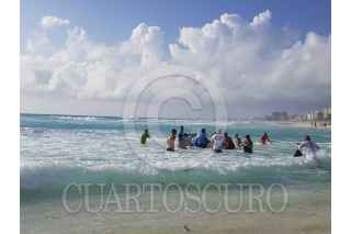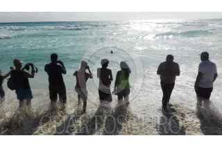 CANCÚN, QUINTANA ROO, 19DICIEMBRE2016.- Más de 20 Delfines "recalaron" en la plaza de Beach Palace; salvavidas de los hoteles Hyat Zilaravlis, turistas, y policías los ayudaron a regresar al mar. FOTO: CUARTOSCURO.COM